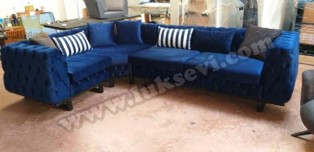 Baxer Köşe Koltuk Takımı müşterimiz için özel ölçü ile ürettiğimiz komple kapitone işlemeli modern ve lüks bir köşe takımıdır. Dekoratif yaşam alanlarınız için ideal Baxer Köşe Koltuk baklava dilimli köşe koltuk modellerinin en gösterişli ve konforlusu bir modeldir. Lüksevi ile istediğiniz renk ve ölçülerde köşe koltuk
