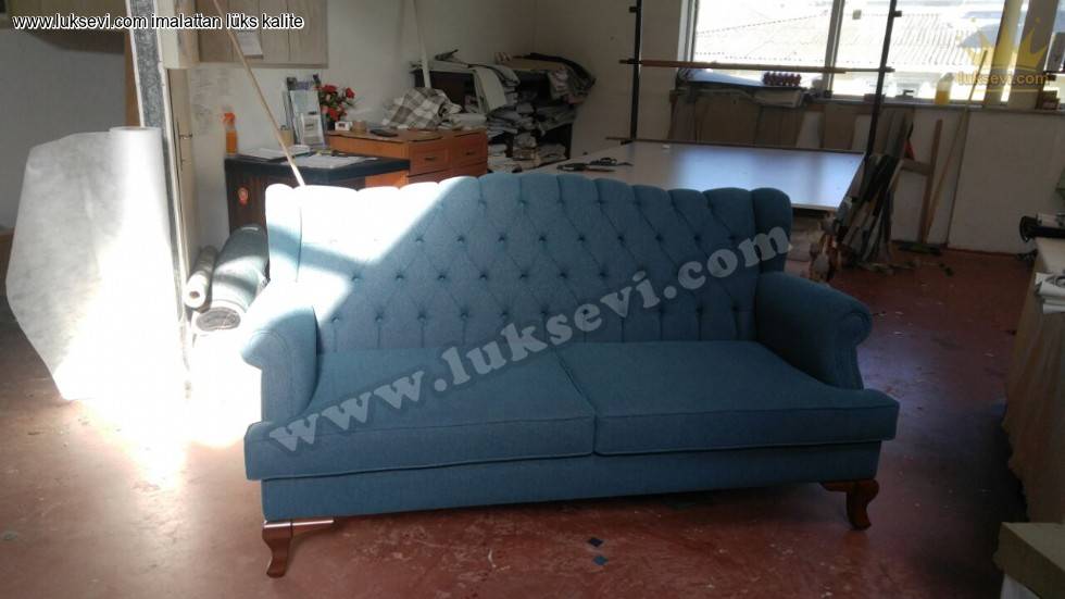 Dört kişi oturum ölçüsüne sahip kapitone işlemeli lüks kanepe. Ahşap ayakları zengin renk seçenekleriyle dilediğiniz ölçülerde kanepeler yaptırabilirsiniz.